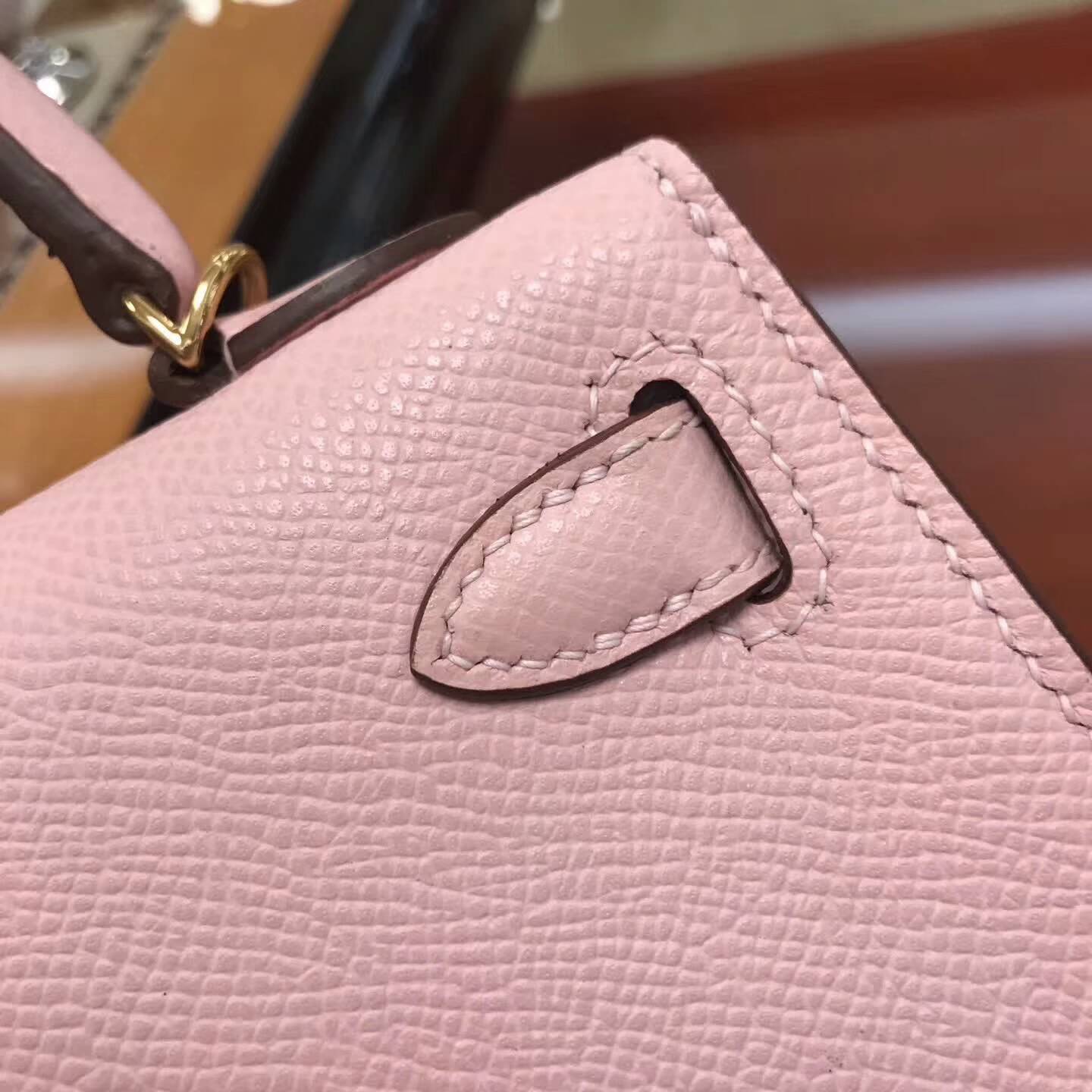Hermes包包 爱马仕Mini Kelly二代 3Q Rose Sakura 芭比粉 金扣 2017年11月15日 0 广州爱玛皮具 Mini Kelly 迷你凯莉 Hermes包包 爱马仕Mini Kelly二代 3Q Rose Sakura 芭比粉 金扣