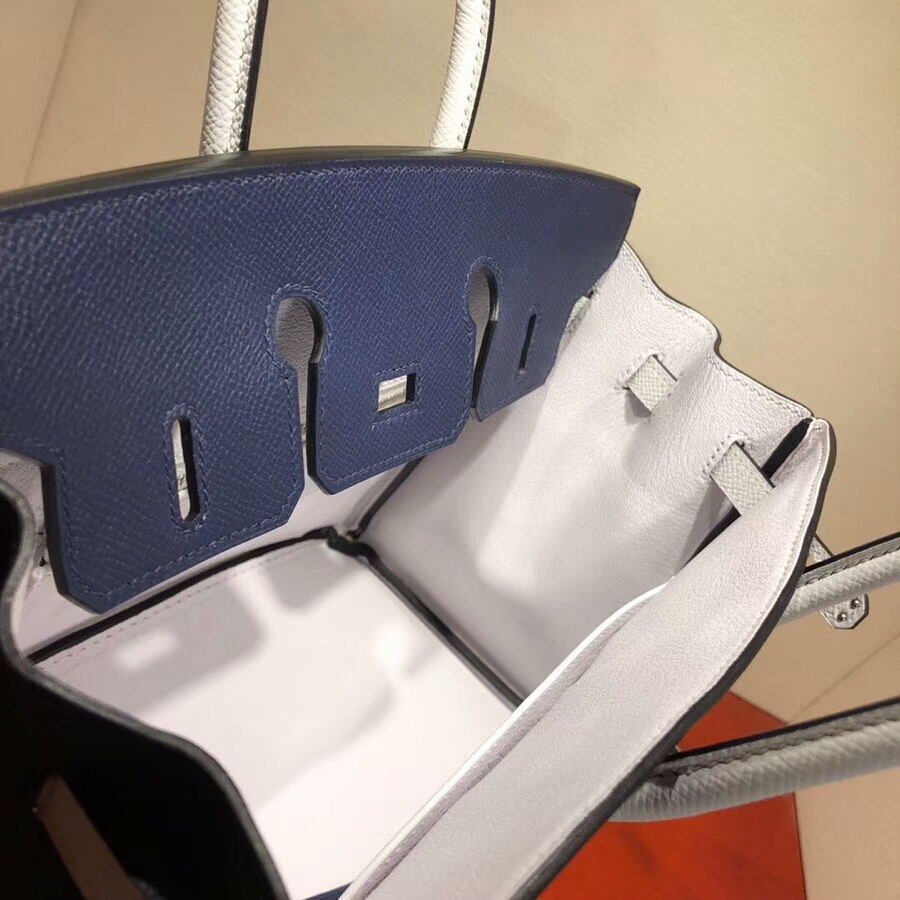 爱马仕铂金包 Birkin 25cm Epsom 73 Blue Saphir 宝石蓝拼 1 Blanc 纯白 银扣 H家进入全新拼色时代 2018年6月7日 0 广州爱玛皮具 Birkin 25CM Epsom 爱马仕铂金包 Birkin 25cm Epsom 73 Blue Saphir 宝石蓝拼 1 Blanc 纯白 银扣 H家进入全新拼色时代