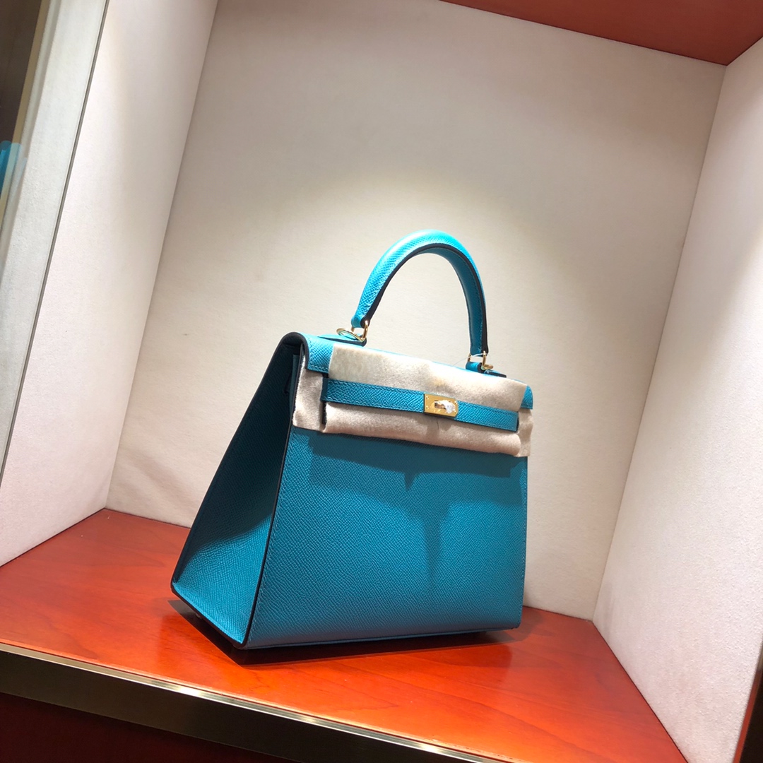 Hermes凯莉包 Kelly 25Cm Epsom 7F Blue Paon 孔雀蓝 银扣 顶级工艺 手缝蜡线 2018年8月8日 0 广州爱玛皮具 Epsom Kelly 25CM Hermes凯莉包 Kelly 25Cm Epsom 7F Blue Paon 孔雀蓝 银扣 顶级工艺 手缝蜡线