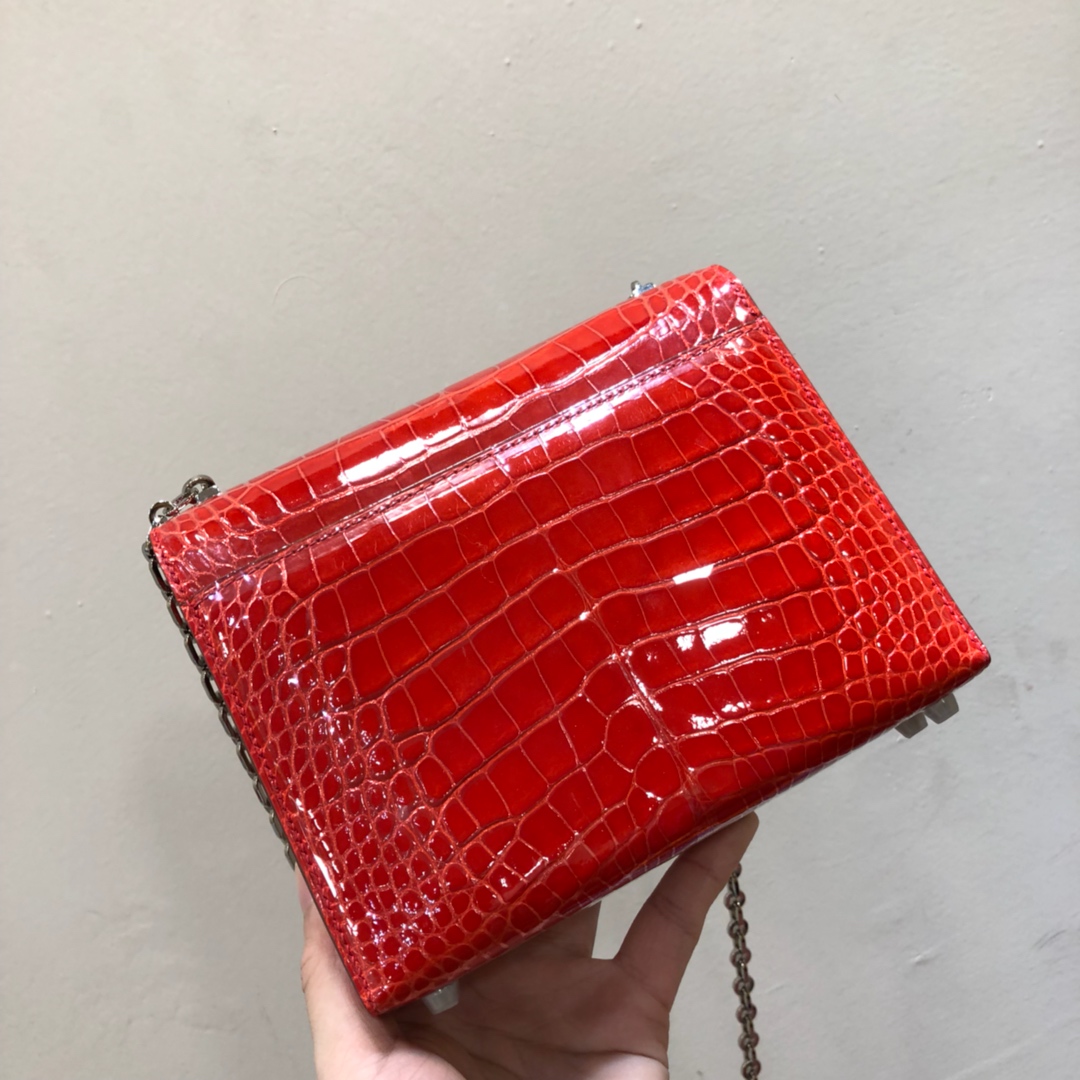 爱马仕包包 Verrou插销包 17cm Alligator Crocodile 密西西比河美洲鳄 D5 Geranium 天竺葵红 银扣 2018年10月8日 0 广州爱玛皮具 Crocodile 鳄鱼 Verrou插销包手枪包 爱马仕包包 Verrou插销包 17cm Alligator Crocodile 密西西比河美洲鳄 D5 Geranium 天竺葵红 银扣