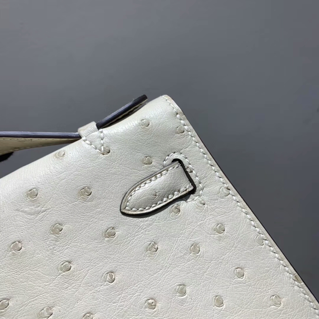 爱马仕包包 Mini Kelly Pochette 南非Ostrich 奶昔白 银扣 蜜蜡线手缝 现货秒发 2018年11月1日 0 广州爱玛皮具 Kelly pochette Ostrich 鸵鸟 爱马仕包包 Mini Kelly Pochette 南非Ostrich 奶昔白 银扣 蜜蜡线手缝 现货秒发