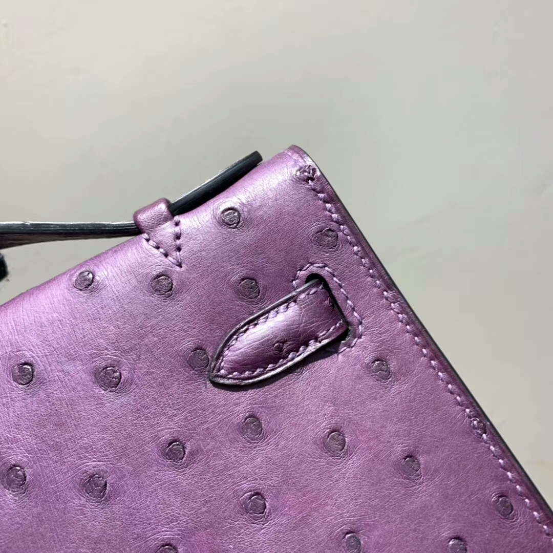 爱马仕包包 Mini Kelly Pochette 南非Ostrich 梦幻紫 银扣 蜜蜡线手缝 现货秒发 2018年11月1日 0 广州爱玛皮具 Kelly pochette Ostrich 鸵鸟 爱马仕包包 Mini Kelly Pochette 南非Ostrich 梦幻紫 银扣 蜜蜡线手缝 现货秒发