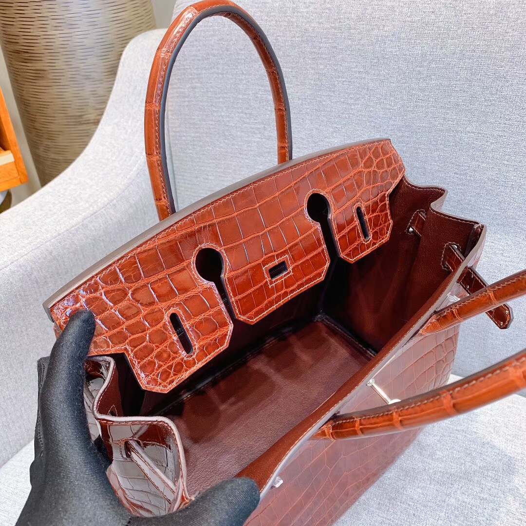 爱马仕包包 Birkin铂金包 30cm Shiny Niloticus亮面两点尼罗鳄 31蜜糖棕 银扣 蜜蜡线全手缝 2019年6月12日 0 广州爱玛皮具 Birkin 30CM Crocodile 鳄鱼 爱马仕包包 Birkin铂金包 30cm Shiny Niloticus亮面两点尼罗鳄 31蜜糖棕 银扣 蜜蜡线全手缝