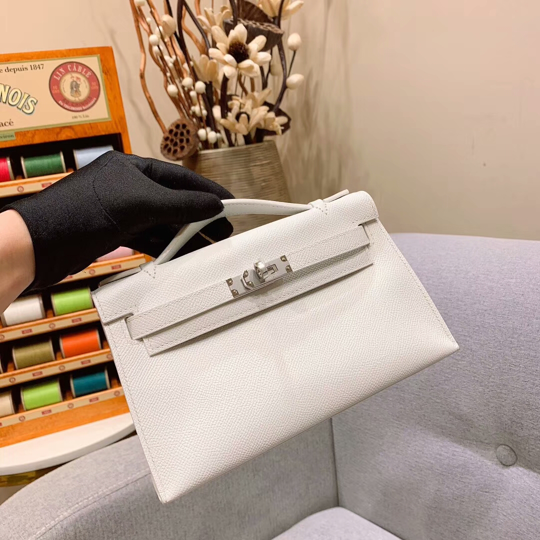 爱马仕包包 Mini Kelly Epsom 01纯白 银扣 蜜蜡线手缝 2019年6月22日 0 广州爱玛皮具 Epsom Mini Kelly 迷你凯莉 爱马仕包包 Mini Kelly Epsom 01纯白 银扣 蜜蜡线手缝