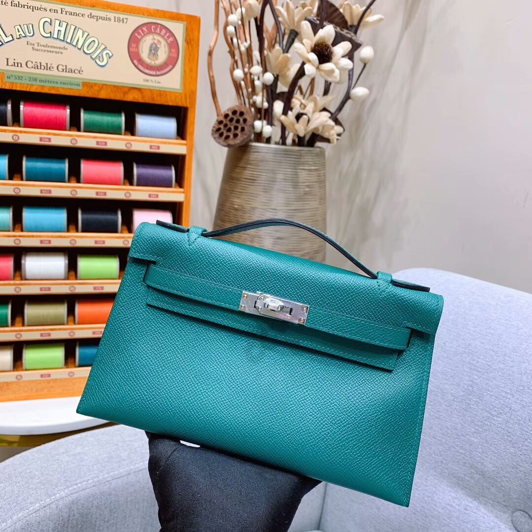爱马仕包包 Mini Kelly Epsom Z6孔雀绿 银扣 蜜蜡线手缝 2019年6月22日 0 广州爱玛皮具 Epsom Mini Kelly 迷你凯莉 爱马仕包包 Mini Kelly Epsom Z6孔雀绿 银扣 蜜蜡线手缝