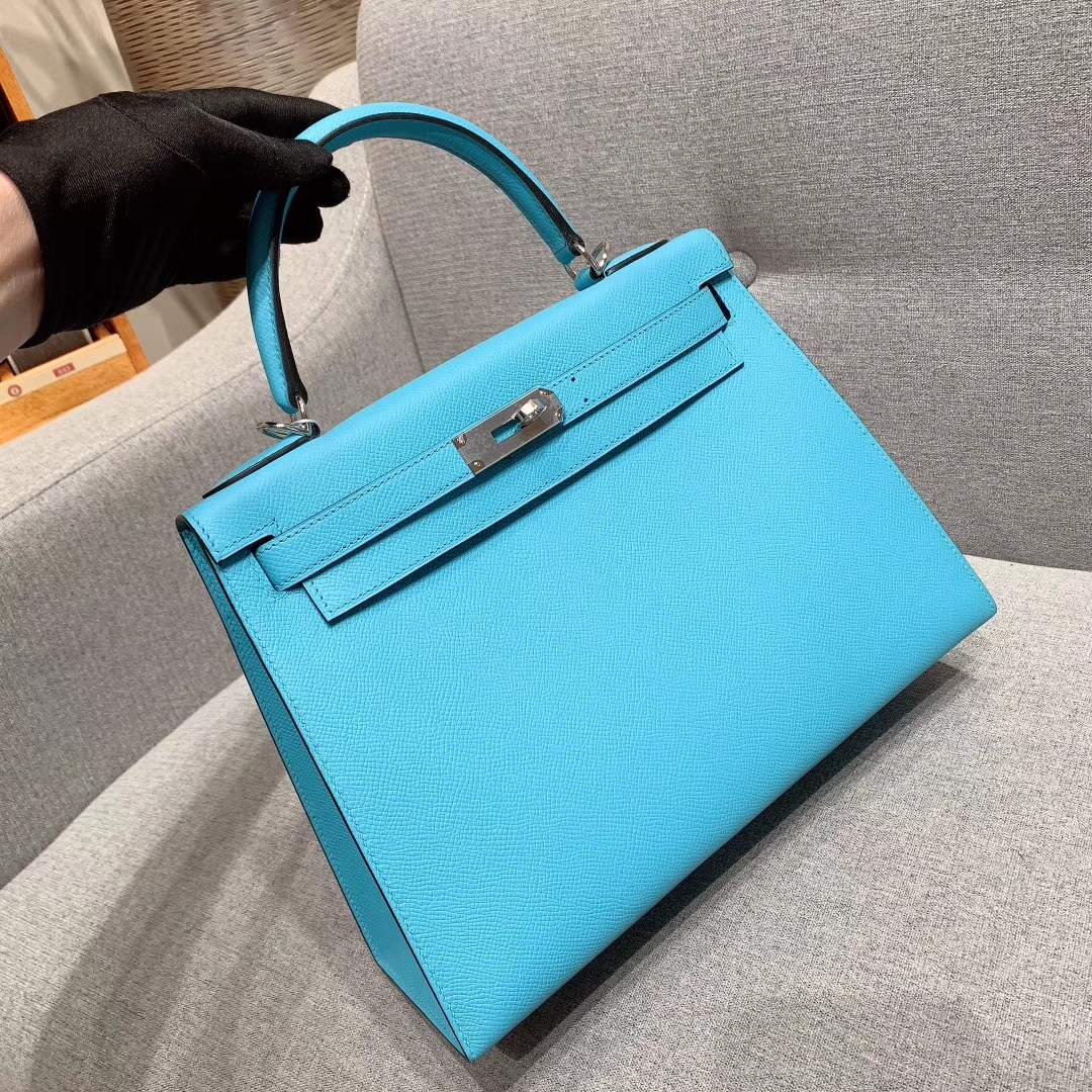 爱马仕厂家 Kelly 28cm Epsom P3北方蓝 银扣