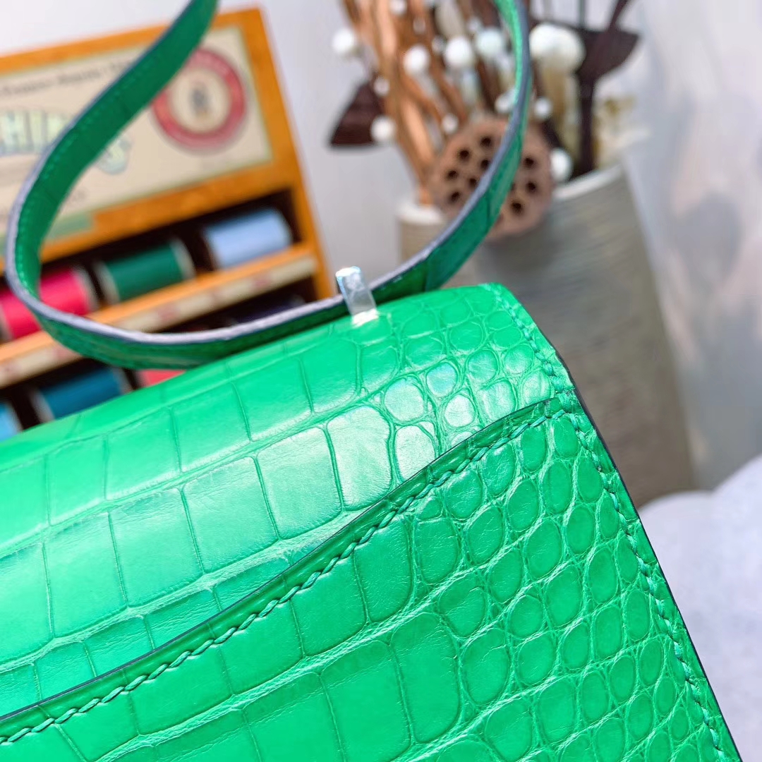 爱马仕包包 Constance 19cm Alligator 雾面方块美洲鳄 1L仙人掌绿 银扣 蜜蜡线全手缝 2019年10月15日 0 广州爱玛皮具 Constance 19CM Crocodile 鳄鱼 爱马仕包包 Constance 19cm Alligator 雾面方块美洲鳄 1L仙人掌绿 银扣 蜜蜡线全手缝