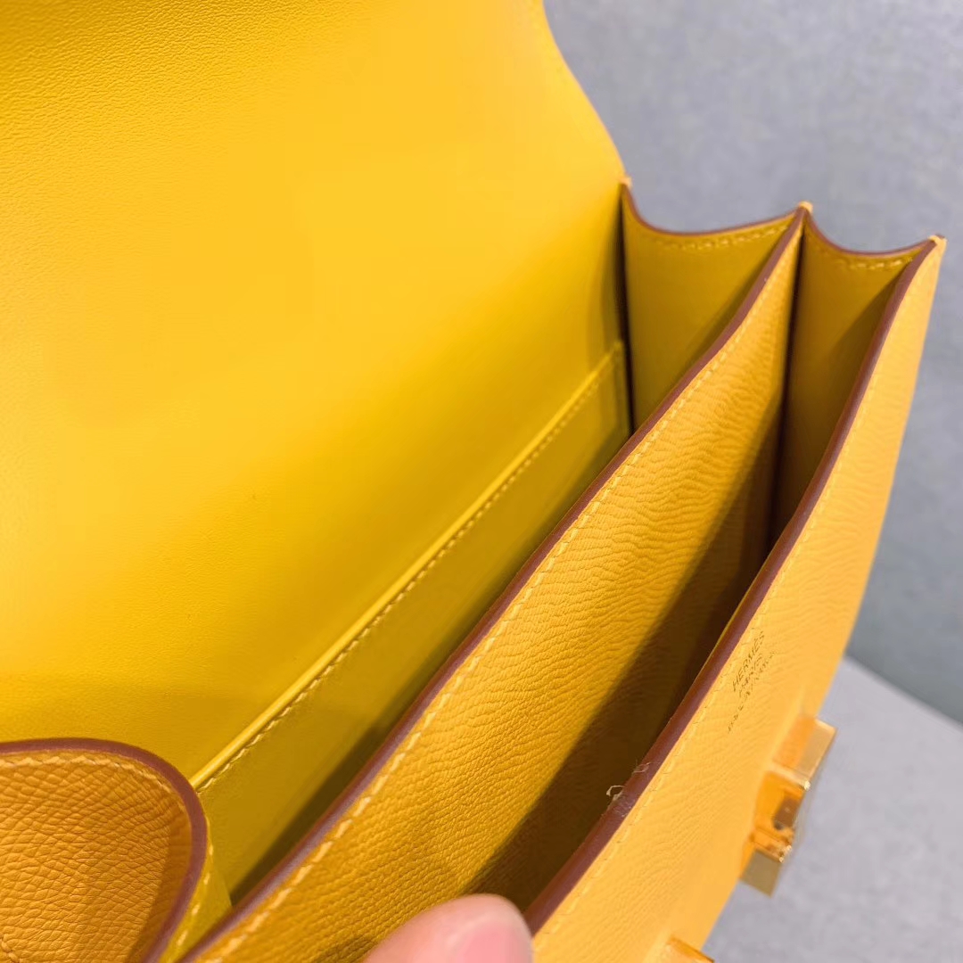 爱马仕空姐包 Constance 19cm Epsom 9D琥珀黄 金扣 2019年10月25日 0 广州爱玛皮具 Constance 19CM Epsom 爱马仕空姐包 Constance 19cm Epsom 9D琥珀黄 金扣