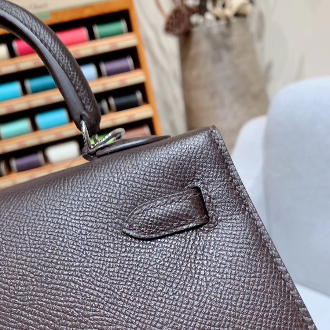 爱马仕凯丽包 Kelly 25cm Epsom 46朱古力啡 银扣 2019年10月29日 0 广州爱玛皮具 Epsom Kelly 25CM 爱马仕凯丽包 Kelly 25cm Epsom 46朱古力啡 银扣