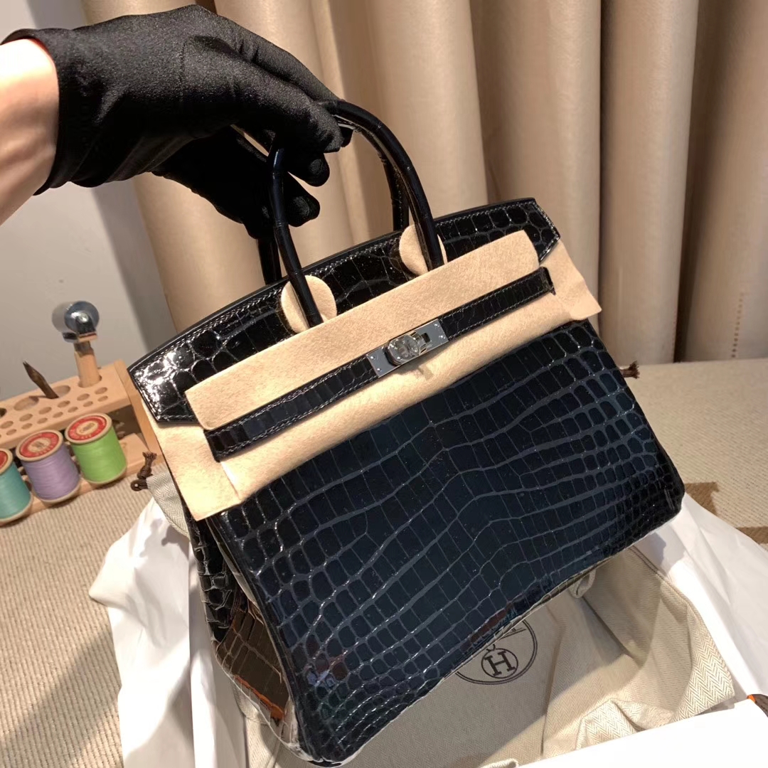 Hermes爱马仕 Birkin 25cm 亮面两点尼罗鳄 89黑色 银扣 2020年4月28日 0 广州爱玛皮具 Birkin 25CM Crocodile 鳄鱼 Hermes爱马仕 Birkin 25cm 亮面两点尼罗鳄 89黑色 银扣