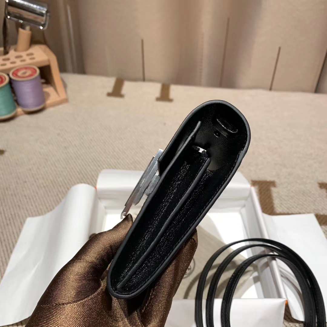 Hermes爱马仕 Minhetic Mini钱包 Cherche山羊皮 89黑色 银扣 可加肩带斜跨 2020年7月1日 0 广州爱玛皮具 Minhetic Mini钱包 山羊皮 Hermes爱马仕 Minhetic Mini钱包 Cherche山羊皮 89黑色 银扣 可加肩带斜跨