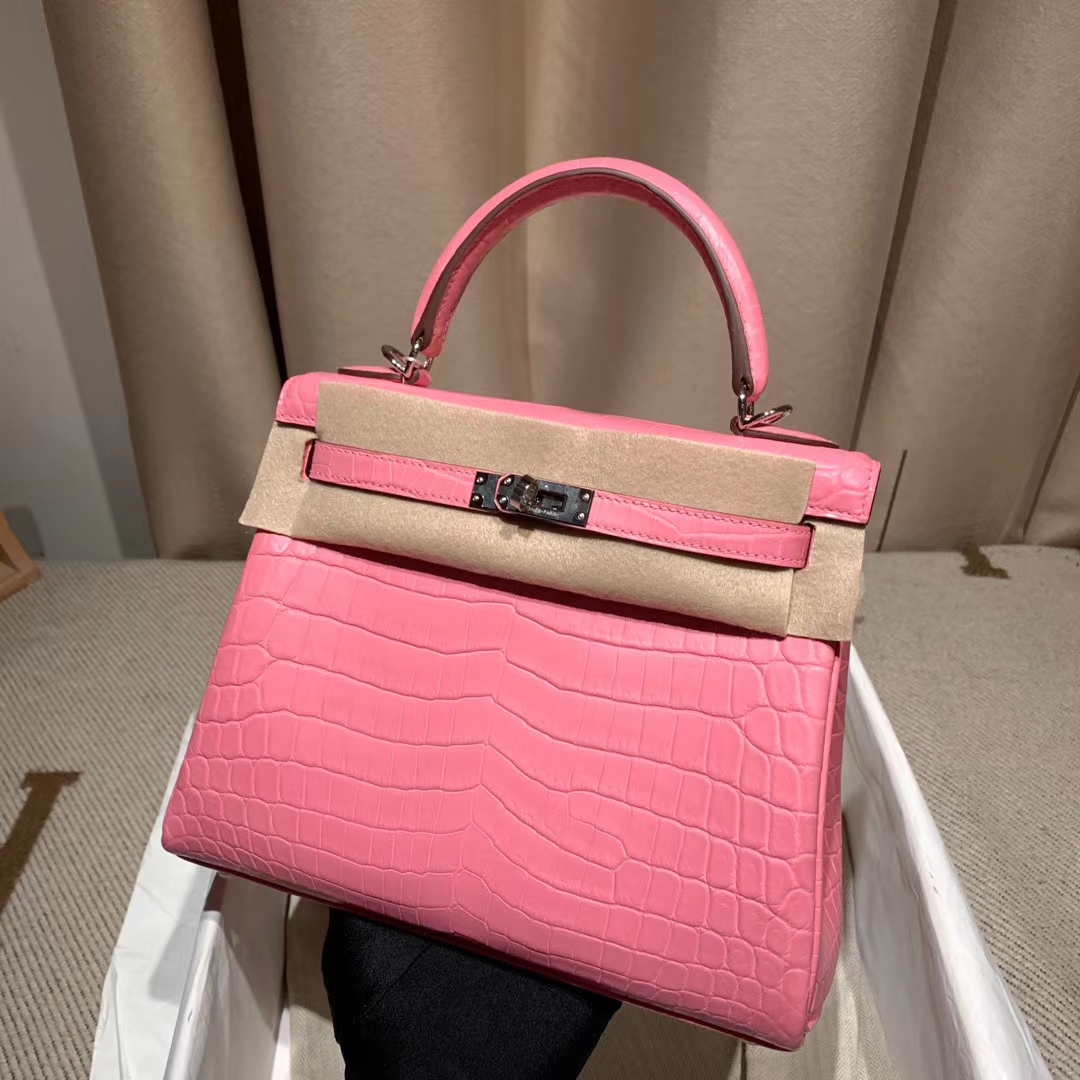 Hermes爱马仕 Kelly 25cm 雾面两点尼罗鳄 1Q奶昔粉 银扣 2020年7月20日 0 广州爱玛皮具 Crocodile 鳄鱼 Kelly 25CM Hermes爱马仕 Kelly 25cm 雾面两点尼罗鳄 1Q奶昔粉 银扣