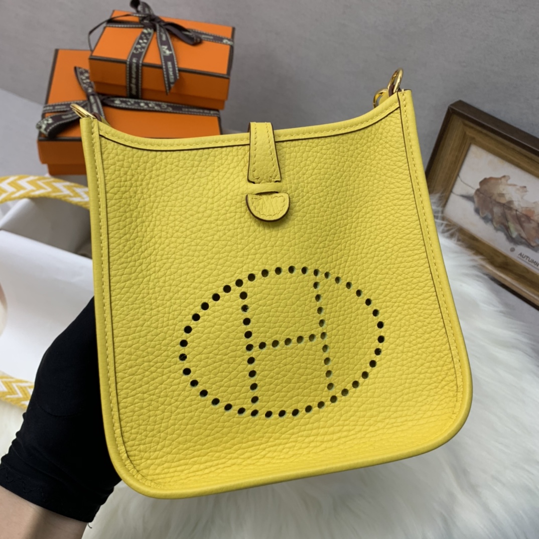 爱马仕包包 Mini Evelyn伊芙琳 17cm 进口Clemence皮 蜡线手缝 9O那不勒斯黄 金扣 2020年12月11日 0 广州爱玛皮具 Evelyn 17cm 爱马仕包包 Mini Evelyn伊芙琳 17cm 进口Clemence皮 蜡线手缝 9O那不勒斯黄 金扣 精细小巧 H家基本入门款 每个人都能背出不同的造型
