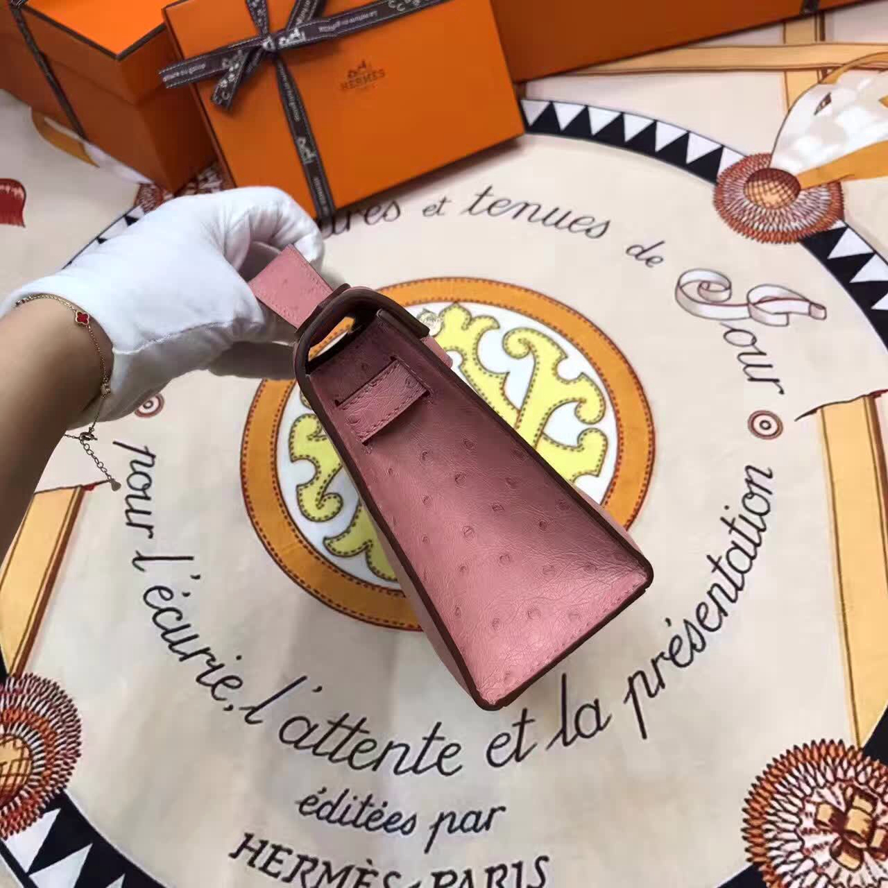 爱马仕包包 mini kelly 22cm Ostrich 南非进口原产鸵鸟皮 顶级工艺 陶瓷粉 金扣 2017年7月18日 0 广州爱玛皮具 Mini Kelly 迷你凯莉 Ostrich 鸵鸟 爱马仕包包 mini kelly 22cm Ostrich 南非进口原产鸵鸟皮 顶级工艺 陶瓷粉 金扣