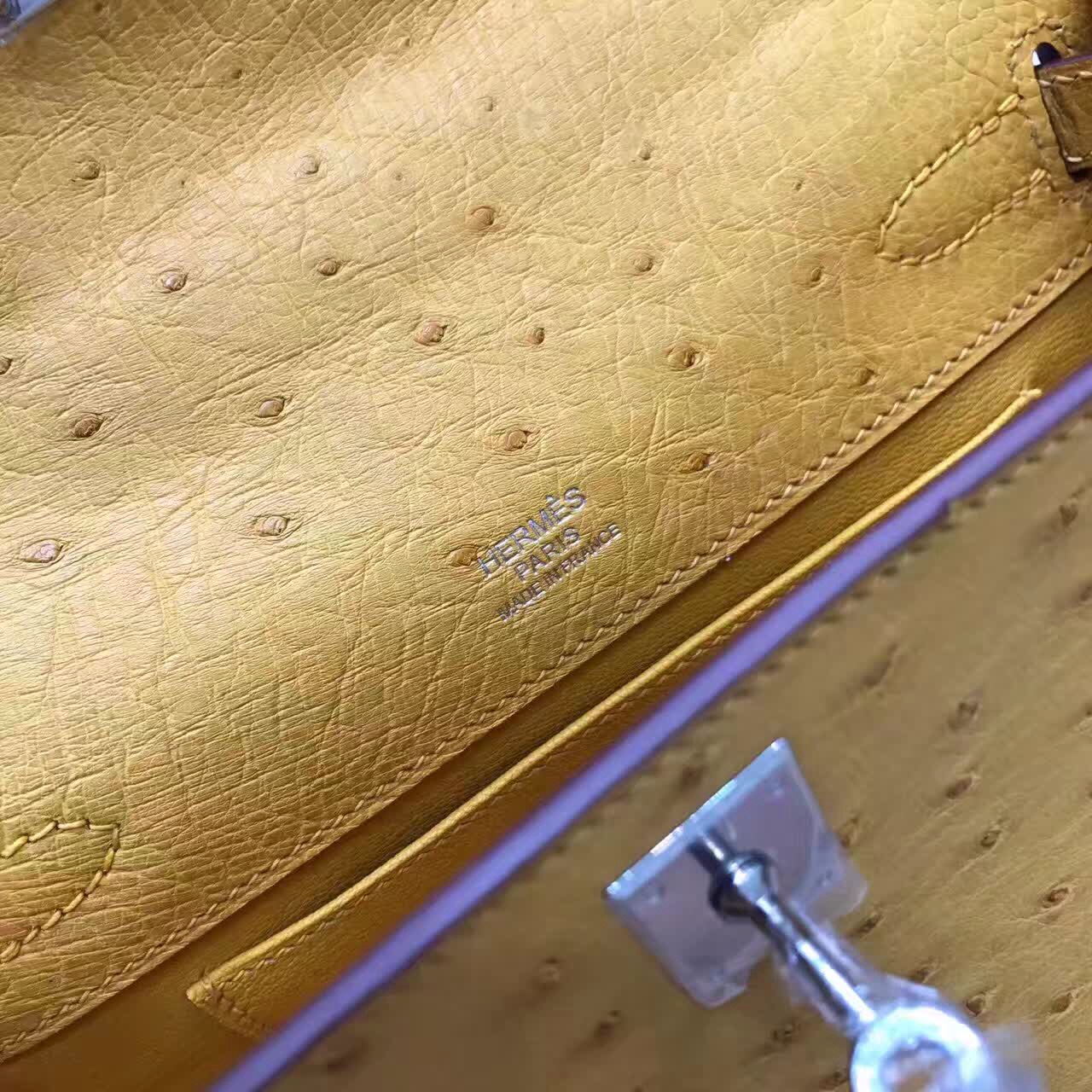 爱马仕包包 mini kelly 22cm Ostrich 南非进口原产鸵鸟皮 顶级工艺 太阳黄 银扣 2017年7月18日 0 广州爱玛皮具 Mini Kelly 迷你凯莉 Ostrich 鸵鸟 爱马仕包包 mini kelly 22cm Ostrich 南非进口原产鸵鸟皮 顶级工艺 太阳黄 银扣