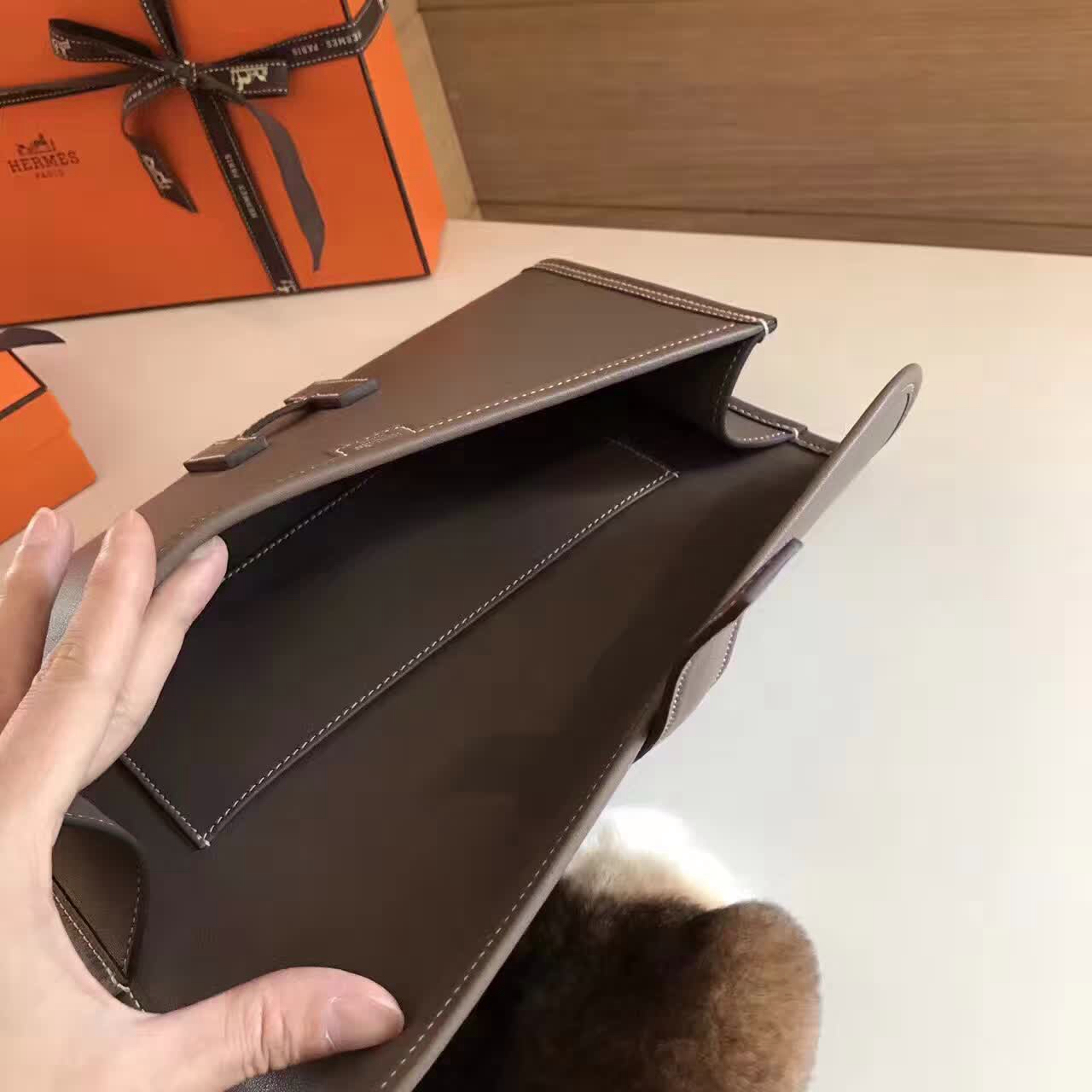 爱马仕包包 Herbag 31cm S2风衣灰 蜡线全手缝