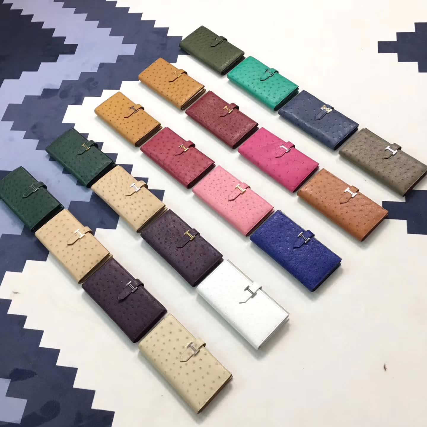 爱马仕钱夹 Bearn钱包 鸵鸟皮 宝石红 金扣
