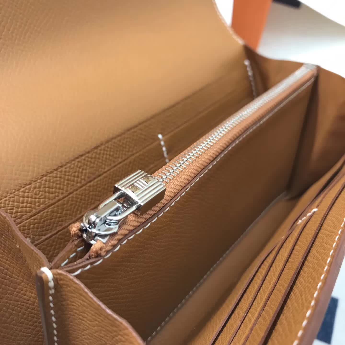 爱马仕钱夹 Kelly钱包 Epsom皮 金棕色 银扣