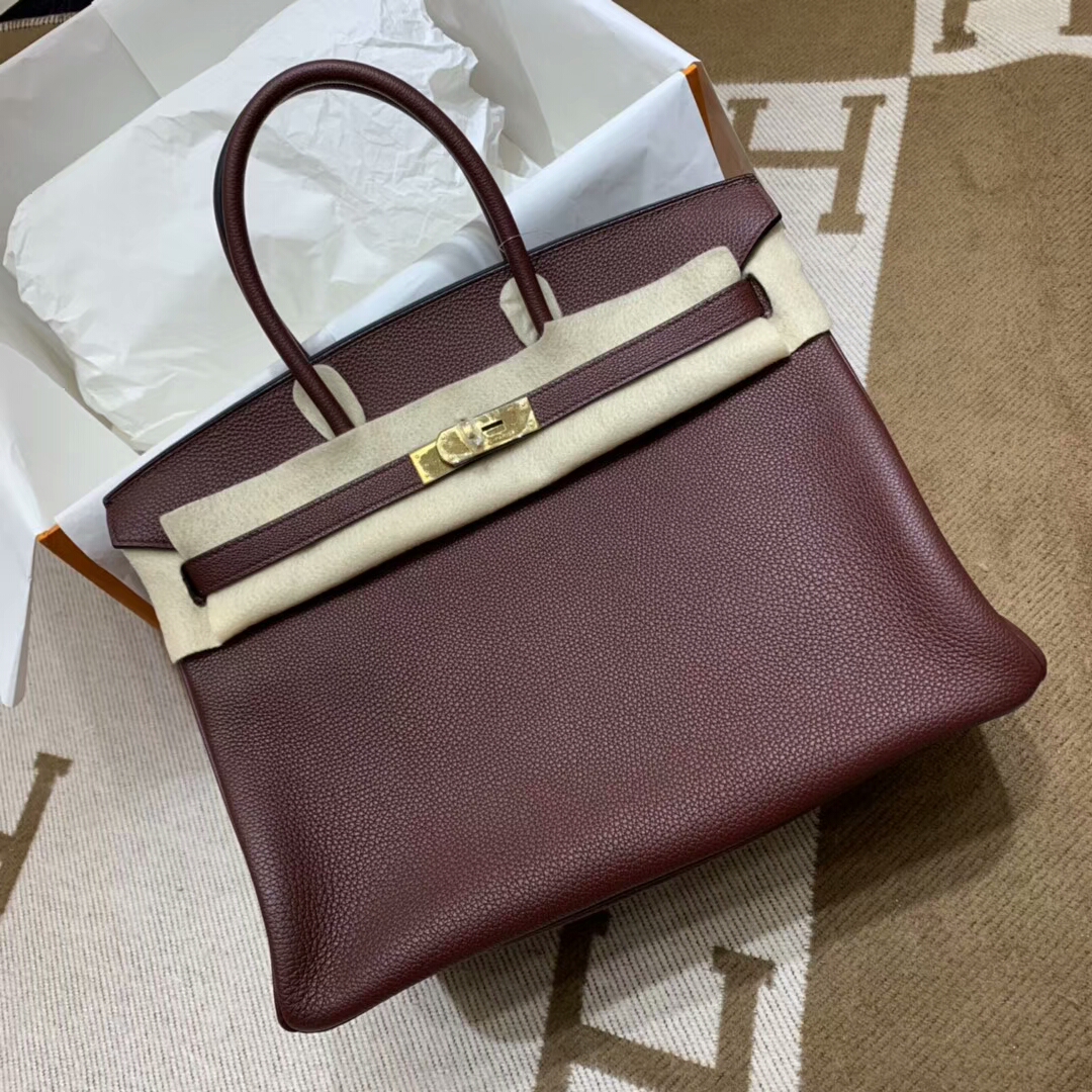 爱马仕铂金包 Birkin 35cm Togo小牛 57 Bordeaux 波尔多酒红 金扣 顶级工艺 手缝蜡线