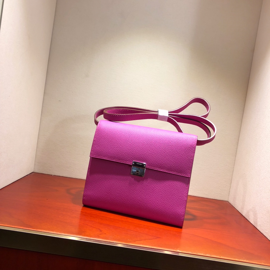 爱马仕包包 illicon 16Cm Epsom E5 Rose Tyrien 玫红 银扣 顶级工艺 手缝蜡线