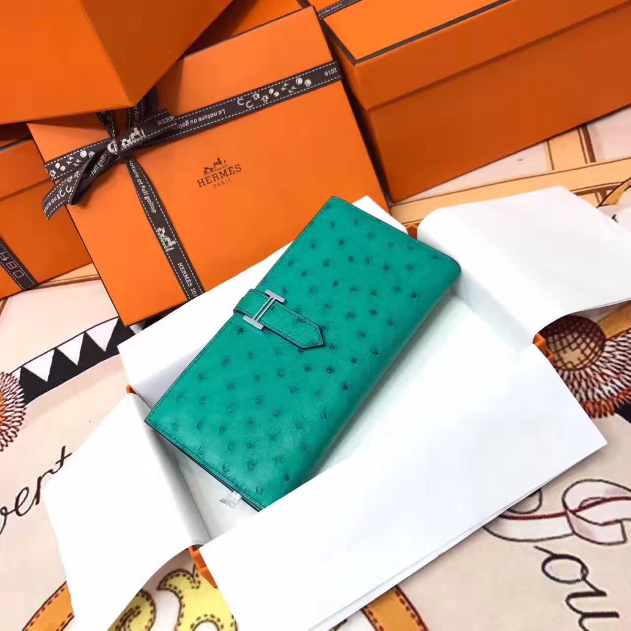 全球同步发售 爱马仕Bearn Waller17.5cm 两折钱夹手拿包 南非原产KK鸵鸟皮 夏日必备